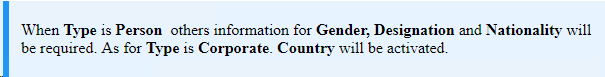3Choose the require Type to indicate either Person or Corporate and the appropriate entry page will be shown accordingly.
