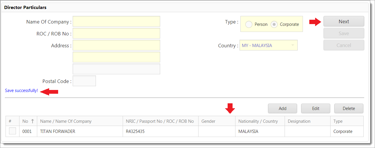 1Go to Director Particulars and click on and system will activate the entries to proceed further.