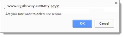 3Confirmation message will be prompted to confirm deletion. Click to confirm delete otherwise click on button if user doesn’t want to delete the record.