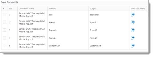 5System will show message “Form 9, Form 49, Form 24, Form Custom cert, Save successfully!” Supp. Documents Listing will list out all uploaded documents in the list.