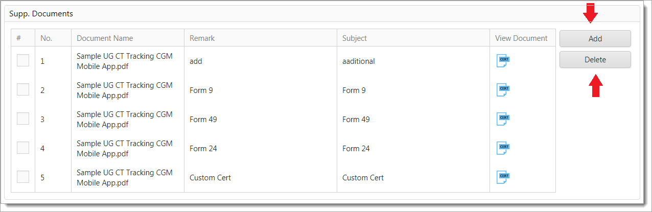 5Save uploaded Additional Documents will be shown on the Supp. Documents Listing.