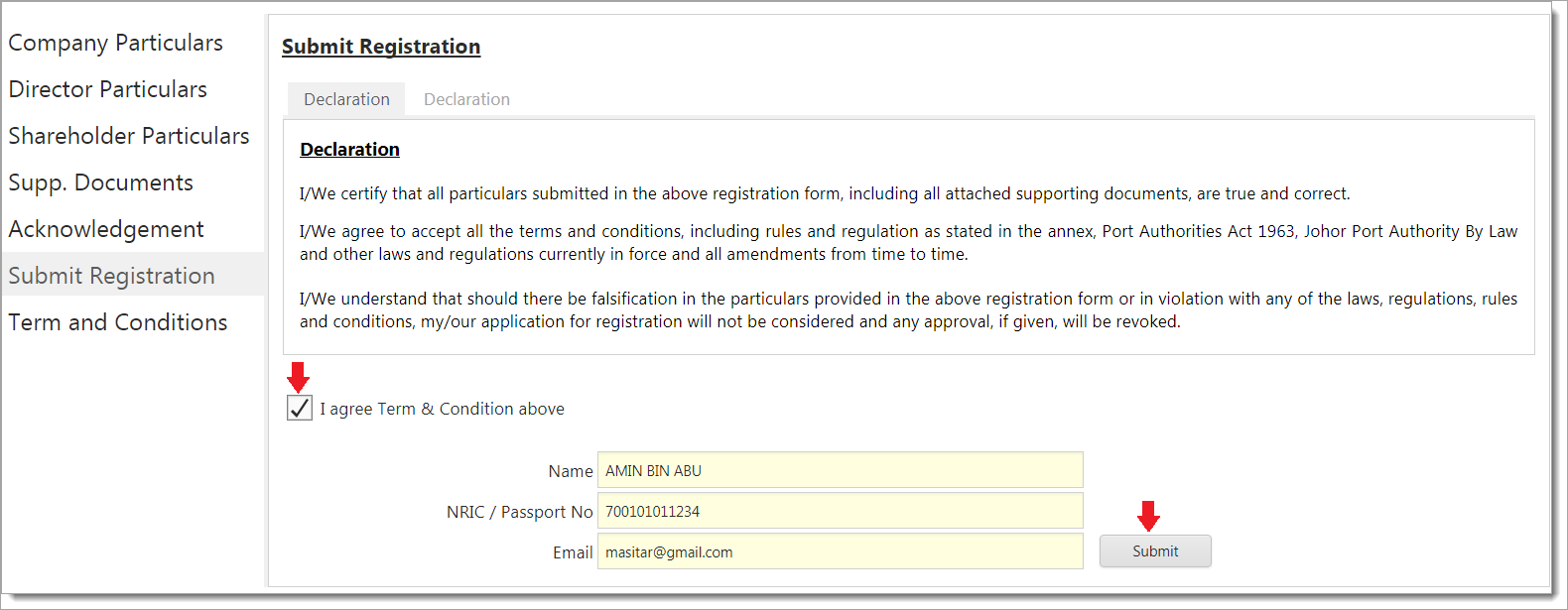 7Your registration will be submitted to Johor Port Authority and you will be notified on registration status via registered email.