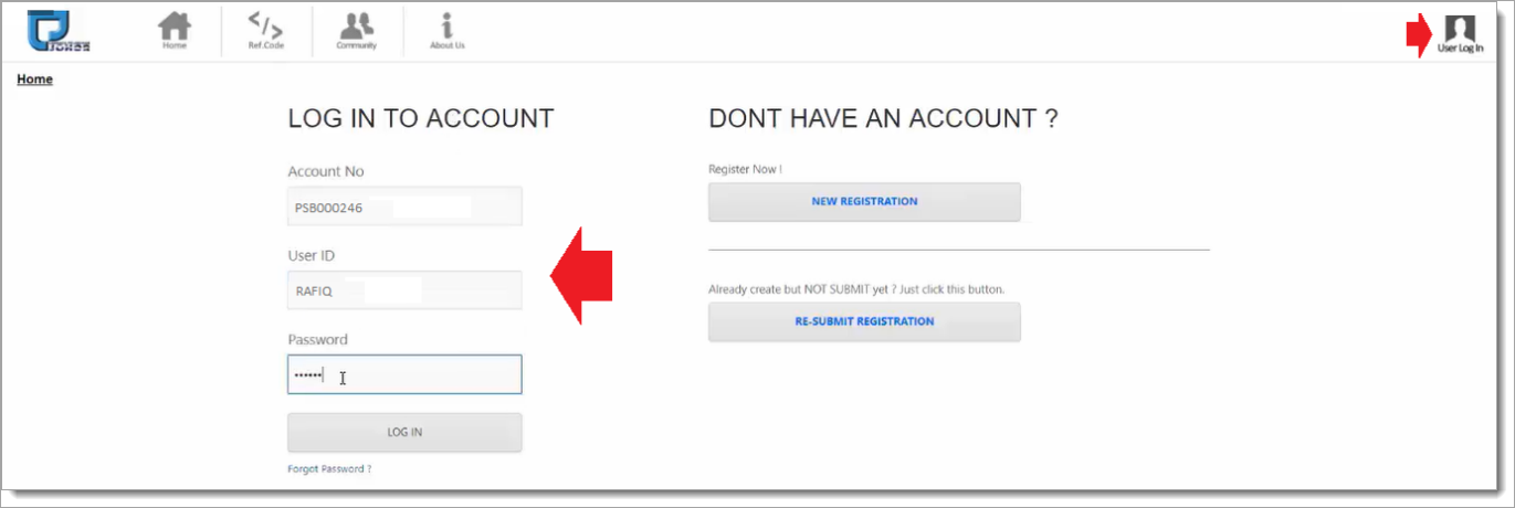 4Upon receiving this email, User can start login to the website using the assigned user ID and password given in the email.