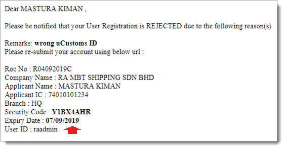 1Security Code provided in Reject/Hold email notification during New Registration process will expire in 3 days.
