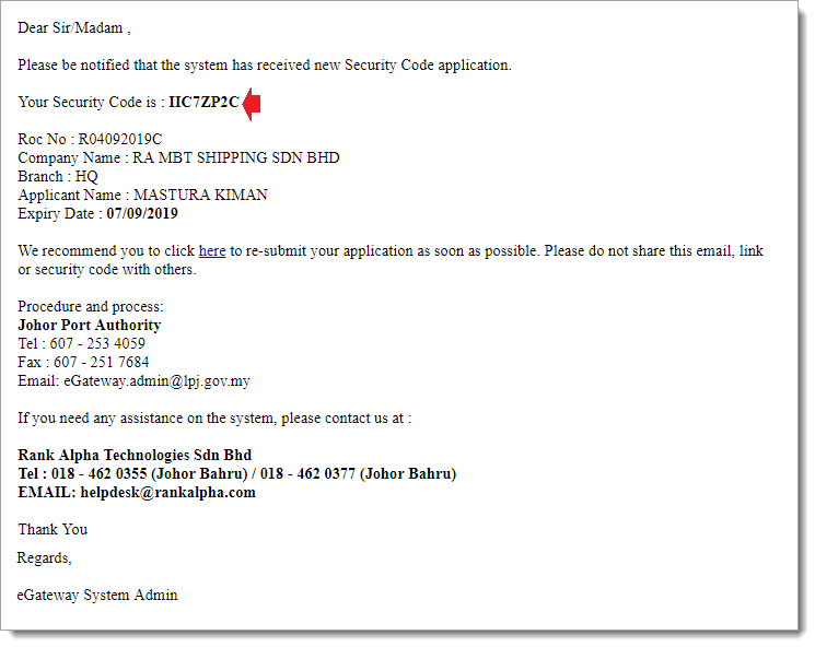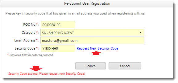 4You have to click on Request New Security Code to request for new security code before can proceed for resubmit.