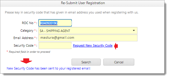 4Message “New Security Code has been sent to your registered email!” will appear once request is processed successfully.