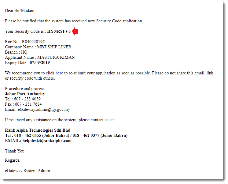 5You will receive an email notification with subject eGateway - Request Security Code