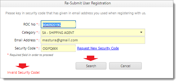 6Enter the provide Security Code and click on button to find the record in the System.