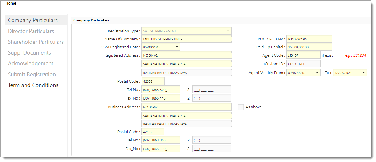 7Once record is found, system will show the registration details and you can amend before submitting the registration.