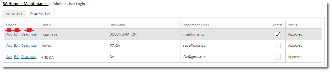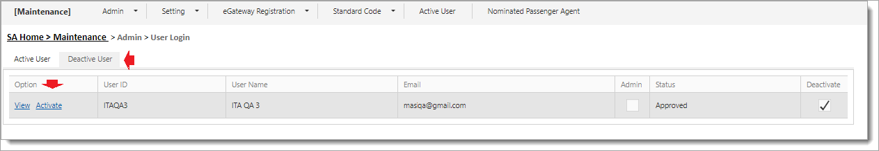 13Deactivated user will be removed from the Active User Login Listing and moved to Deactive User Tab Listing.